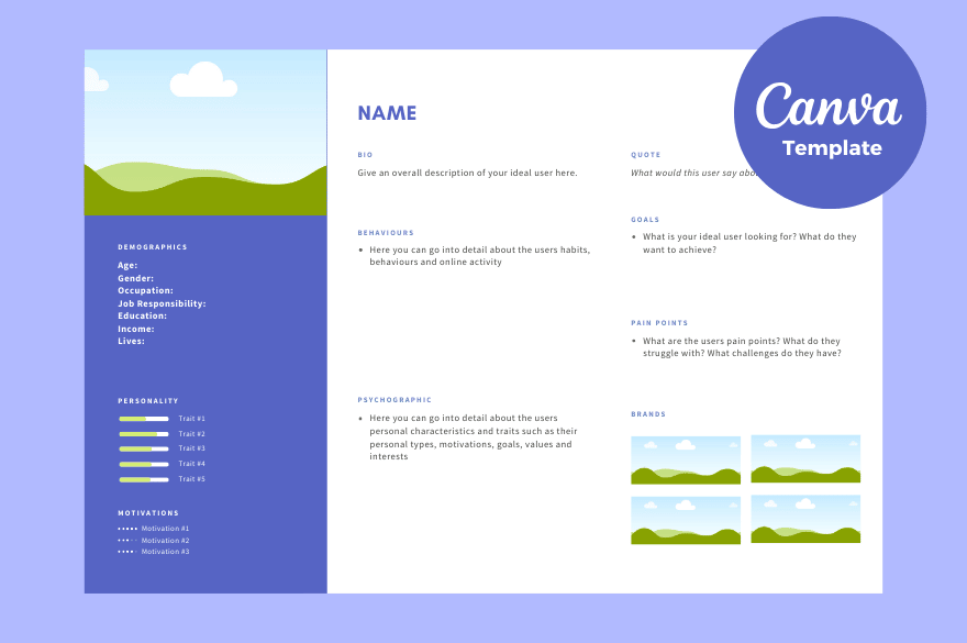 Get the free template to easily craft a detailed profile of your ideal customer and/or target audience.